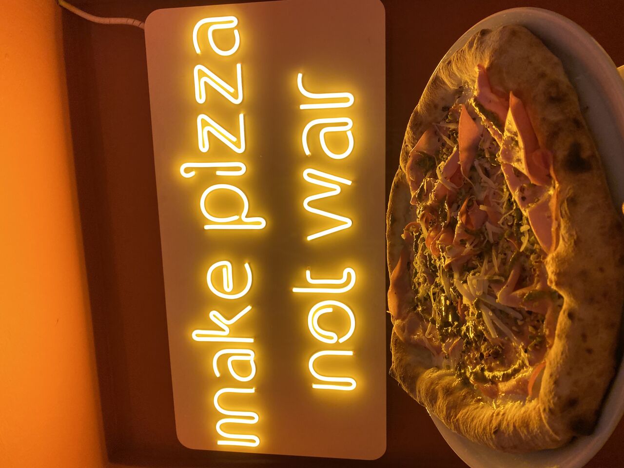 Fare la pizza per noi significa consacrare l’italianità a tutto tondo ed è con questa forma geometrica, il cui punto d’inizio può essere il suo punto di fine, che noi vogliamo segnare l’ “eterno ritorno”. Che possiate sempre tornare a trovarci.